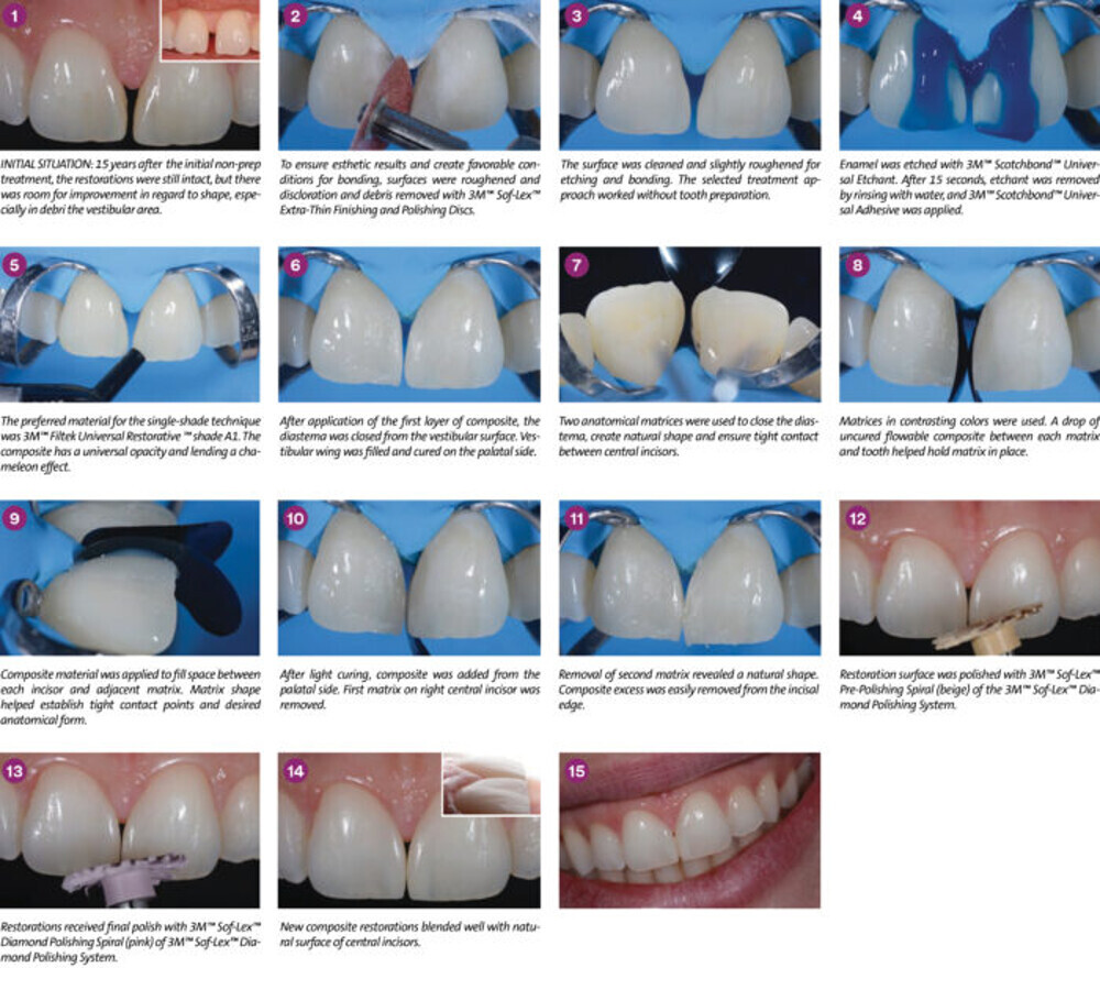 The technique worked beautifully to close the diastema. Despite freehand modeling, it was much easier and more precise than using a palatal silicone index. In addition to the natural shapes that were achieved, 3M Filtek Universal Restorative blended well with the surrounding dentition, making the restorative work indistinguishable.