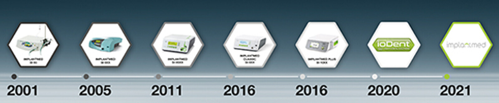 Today Implantmed is a synonym for dental implantology. Each Implantmed generation is characterised by technical features, high reliability and is always one step ahead! The journey from the very first Implantmed through to the smart device has been an incredible evolution, and one which is continuing apace. Implantmed has arrived in the digital future.