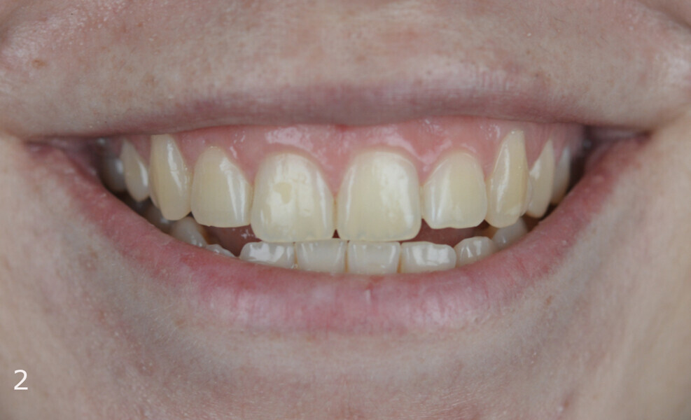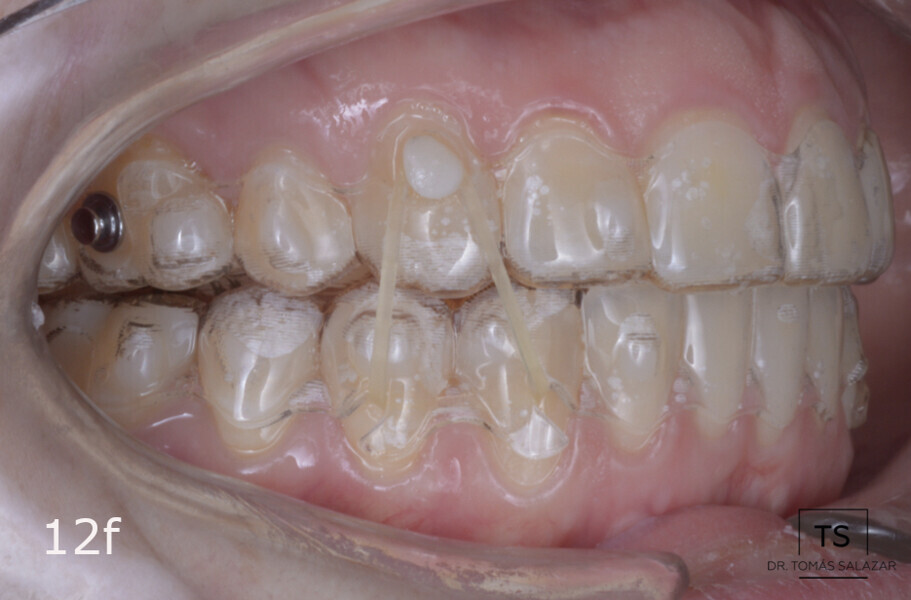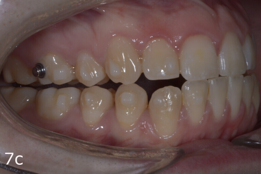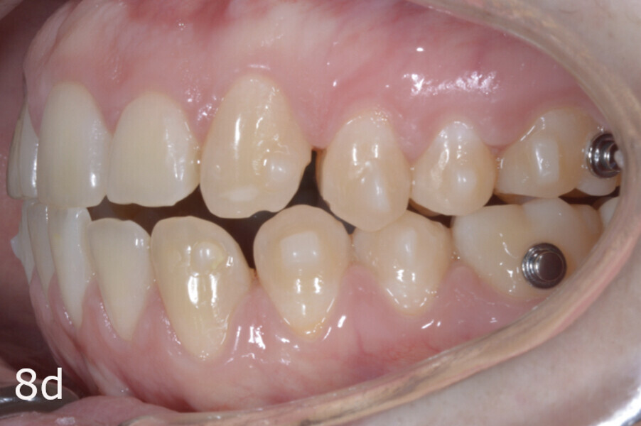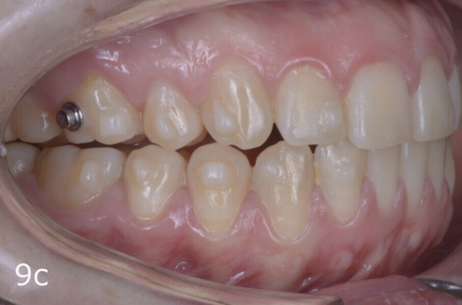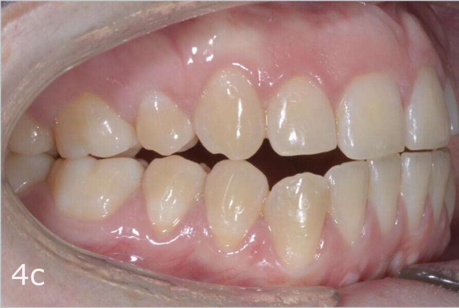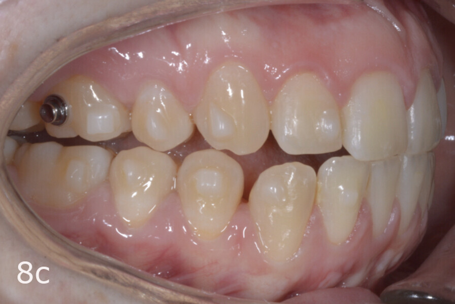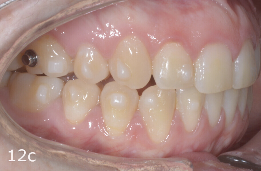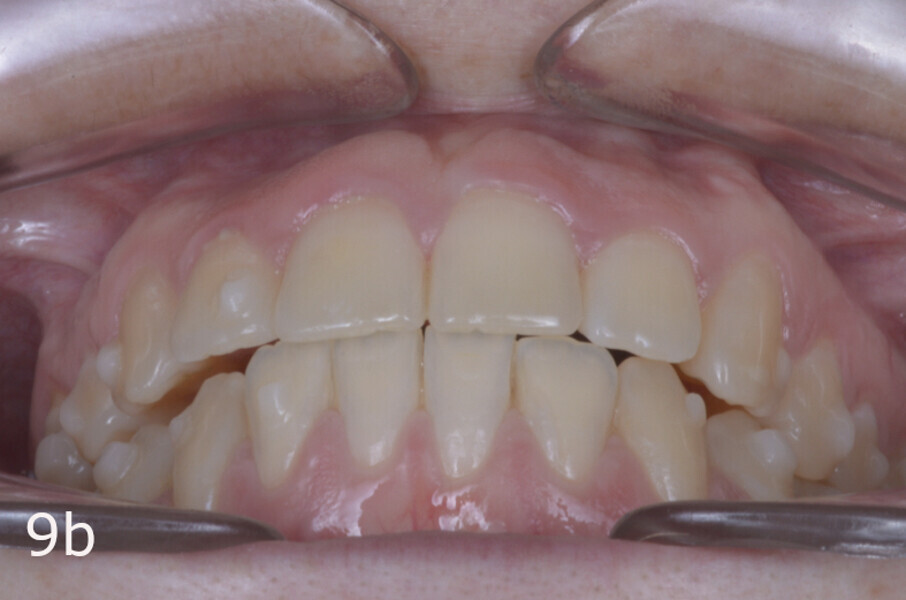 Figs. 13a–f: Final situation. The lack of overjet and overbite and the midlines had been improved and anterior and canine guidance achieved.