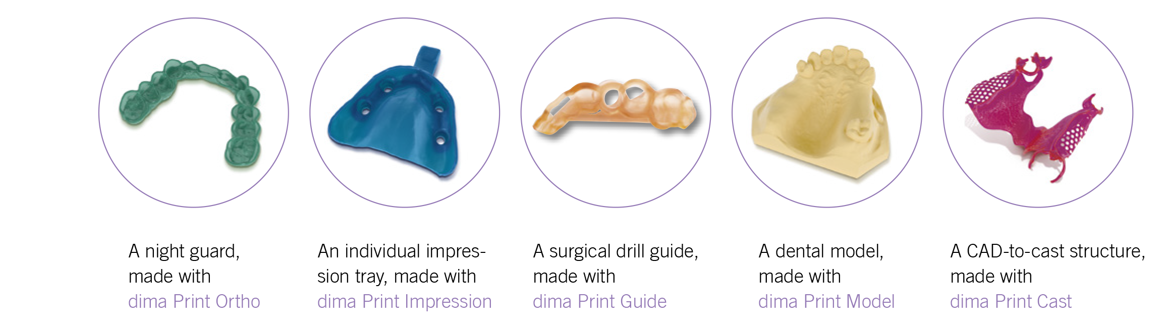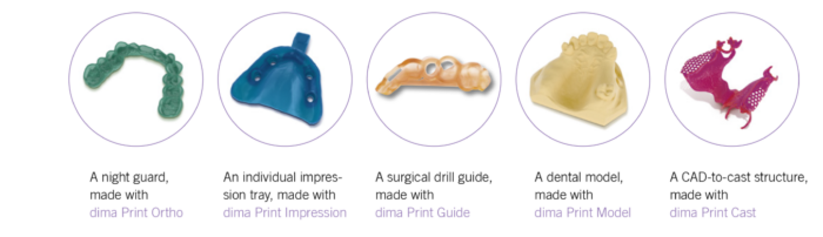 Due to the size of the material tray and exceptional 3D accuracy, cara Print 4.0 can be used for the production of all polymer-based dental appliances.