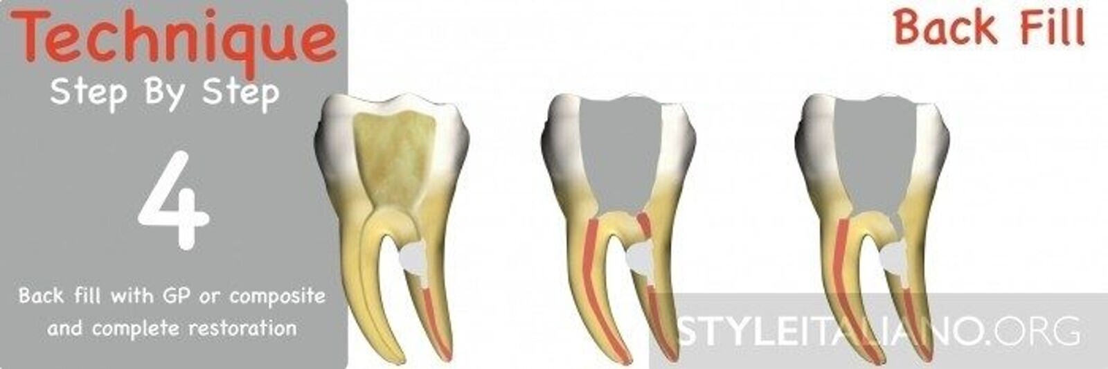 Fig. 5: The last step is represented by backfilling the coronal part with GP or composite material in a second visit.