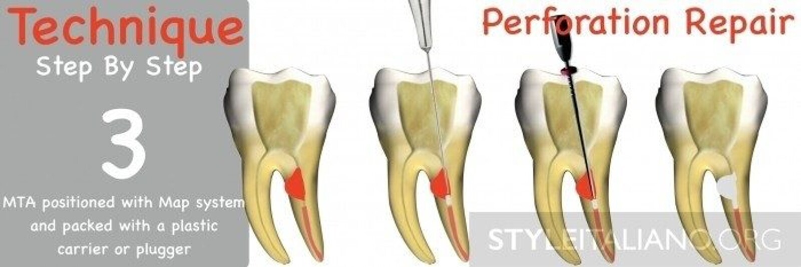 Fig 1: The MTA sandwich technique is the author’s personally recommended repair method for this kind of perforation and it has been well described by Fabio Gorni in this article.