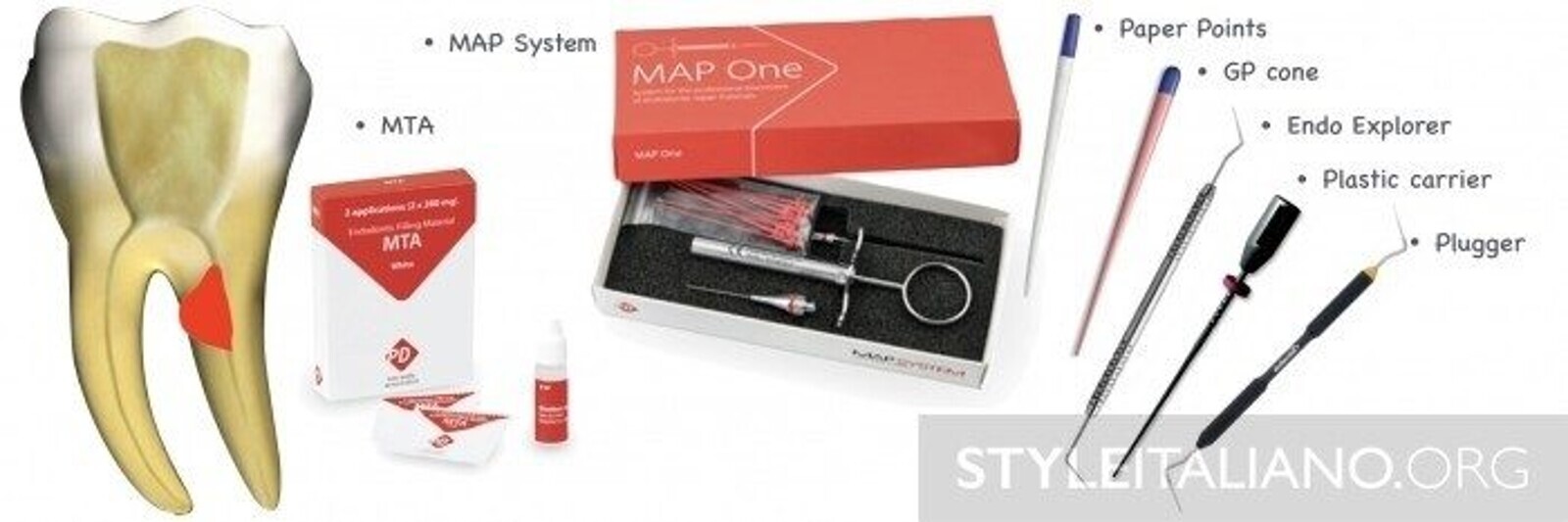 2) The MAP (Micro-Apical Placement) System, provides an efficient method for placing repair materials and is the only one device that lasts over time. It has lot of tips, steel and NiTi, that can satisfy all the requirements. I love the NiTi tip because I can bend it as I want.